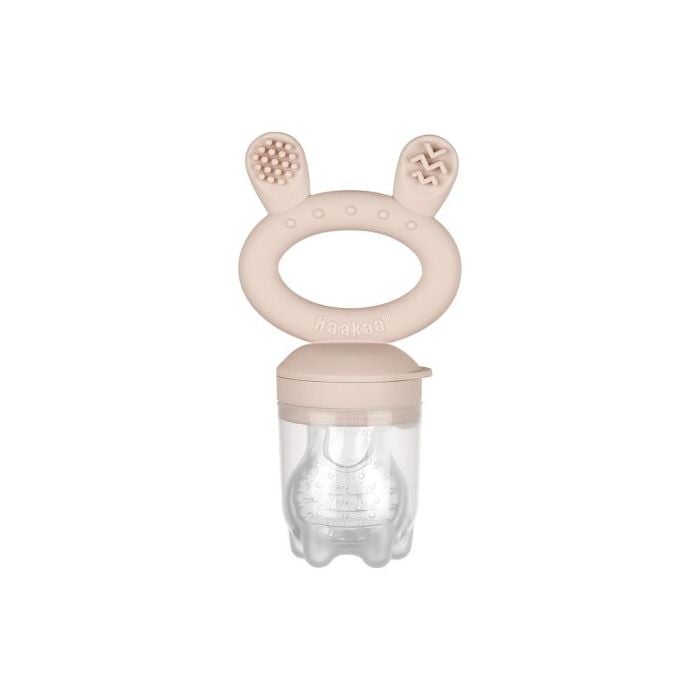 Komplet silikonski podajalnik in pokrovček za svežo hrano Haakaa je popoln način za varno uvajanje novih okusov vašega otroka brez tveganja zadušitve. Naš podajalnik, izdelan iz 100% silikona za živila, je bolj higienski, trpežen in enostaven za nego kot mrežaste alternative, ki jih je izjemno težko očistiti in se lahko strgajo, zadržujejo bakterije in absorbirajo vonjave. Naš podajalnik je zelo enostaven za sestavljanje in uporabo! Preprosto položite sadje, zelenjavo ali meso v silikonsko vrečko in jo tesno zaprite. Ledene dobrote lahko zamrznete tudi neposredno v naš podajalnik. To naredite tako, da preprosto povlečete po neprepustnem pokrovu vrečke, v vrečko nalijete tekočino (na primer materino mleko ali pire), sestavite napajalnik, namestite pokrovček in zamrznete! Ko je zamrznjeno, odstranite pokrov vrečke in pustite, da vaš malček raziskuje! Uživali bodo, ko bodo imeli možnost doživeti nove okuse in teksture, hkrati pa graditi samostojnost, se naučiti samostojno hraniti in izboljšati koordinacijo med roko in očmi ter fino motoriko.